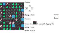 One, I don't want to port all of the code into javascript. So, web version dead. RIP web version. Two, I added a map screen. Yer welcome. Three, the verb screen has been reworked so that from the game...