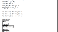 Today I added improvements to how you can navigate about the world. You can see neighbor locations, but you will only see detail once you have visited that neighbor. The location is described in part...